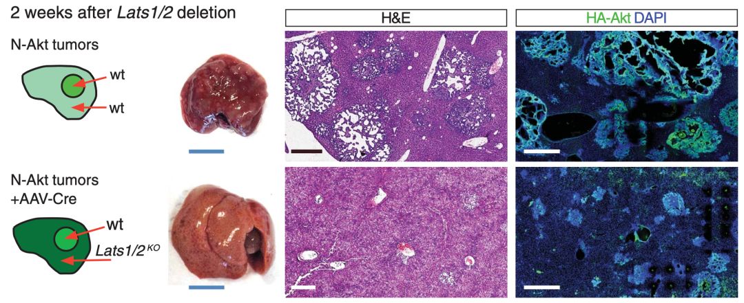 为了研究Hippo通路下游的这俩蛋白在肿瘤附近健康组织中的的作用,Halder团队首先构建了一种名叫N-Akt的小鼠肝癌肿瘤模型。