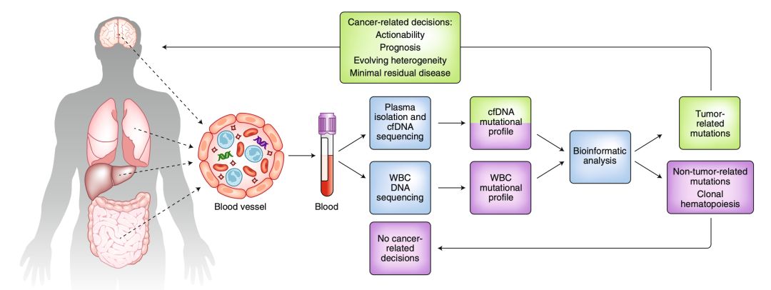 他们发现,肿瘤患者血液cfDNA中携带的大部分基因突变,可能不是来自于癌细胞,而是血液中白细胞。