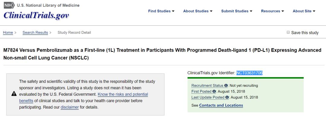 该临床试验代号:NCT03631706,预计9月份开始招募患者,详细信息请参考:https://www.clinicaltrials.gov/ct2/show/NCT03631706