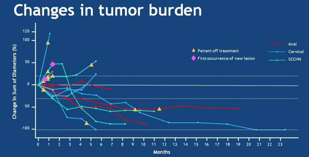 招募17位HPV相关癌症,包括肛门癌、宫颈癌和少数头颈鳞癌患者,其中12位患者有确定的HPV感染,使用不同剂量的M7824进行治疗。