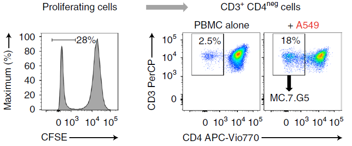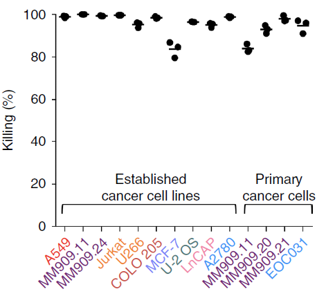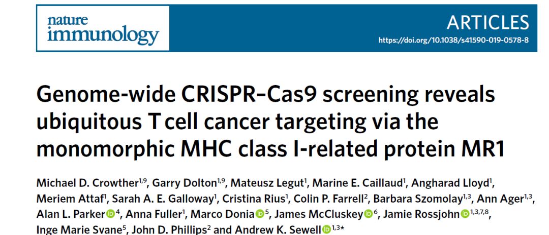 纵观整个人类发展史,你会发现“偶然的意外”扮演了相当重要的角色,推动了很多科学的进展: 苹果砸在牛顿的头上,引申出了万有引力和经典力学的物理学大厦之基;德国科学家凯库勒在壁炉前打了个瞌睡,就梦到了苯分子的环状结构。 医学同样如此。在大名鼎鼎的抗生素“鼻祖”——青霉素被发现以前,细菌感染是威胁人类健康的最大杀手,每年上亿人丧生。 直到1928年9月的某一天。 英国科学家弗莱明正在观察他培养的葡萄球菌,意外发现窗户附近的一个培养皿“长毛了”,这让他十分费解。 深究原因,原来是楼上一位研究者正在研究青霉菌,青霉菌意外飘落到了他的葡萄球菌培养皿中,造成了这场“实验事故”。 深入研究后,弗莱明发现青霉菌附近的葡萄球菌都“溶解”了。原来青霉菌的某种分泌物能够抑制葡萄球菌的生长,也就是后面大名鼎鼎的青霉素。这次“意外”发现使得青霉素得到广泛地应用,弗莱明也因此被授予诺贝尔生理与医学奖。 弗莱明(图片来源于网络) 医学的进步,有时就是这么奇妙。百年过去了,细菌感染早已被医学征服,人类面临最大的健康杀手由感染换成了癌症——2018年,全球近1000万人死于癌症。 为了攻克癌症,除了传统的放化疗和靶向治疗,这几年癌症免疫疗法取得了长足进步,“PD-1抗体”、“CAR-T细胞”、“溶瘤病毒”等以调节免疫系统为主的疗法创造了无数奇迹,一些患者“治愈”了。 就在这个节骨眼上,又一场“意外”发生了:一位英国科学家发现了一种“万能癌症杀手”细胞-MC.7.G5细胞,在面对癌细胞时,这些万能杀手们异常勇猛,能抗猛打,我们姑且称之为“万能癌症杀手”细胞,相关研究发表在了权威学术期刊《自然-免疫学》上。 1 MC.7.G5细胞的 意外发现 Andrew Sewell教授是英国卡迪夫大学的研究者,他的团队一直致力于胸腺淋巴细胞(也就是T细胞,人体免疫细胞)相关抗原和受体的研究。 Andrew Sewell教授 意外就发生在这位Andrew教授头上。为了研究一类识别细菌的免疫细胞,Andrew的团队选取了英国威尔士一个血液中心的血液样品进行分析。 鬼使神差的,在研究细菌之余,团队成员们顺便把癌细胞也纳入了分析范围。于是,“意外”就这么发生了—— 在分析所有免疫细胞的实验结果时,他们意外地从一份血液样品中发现了一个很有意思的T细胞克隆:它在一种肺癌细胞系——A549细胞的刺激下能够发生增殖,说明这个T细胞克隆能够识别A549肿瘤细胞并产生反应。 这是一个很有意思的结果,但并称不上太大惊喜。于是他们将这个T细胞(免疫细胞)克隆命名为MC.7.G5(图1)。 但接下来对这个T细胞克隆的研究则让他们感到了震惊:我们到底发现了一个怎么样的“神奇”细胞啊! 图1,从外周血中分离到对癌细胞A549产生反应的MC.7.G5细胞克隆,细胞数量增殖7倍 2 神奇的“肿瘤杀手” 为了研究这个对肺癌细胞有所反应的MC.7.G5细胞,研究团队们将MC.7.G5细胞与10种癌症细胞系(包括肺癌、皮肤癌、血癌、结肠癌、乳腺癌、骨瘤、前列腺癌、卵巢癌、肾癌和宫颈癌)放在一起培养2-3天,想试试这个兴奋起来的细胞到底有点什么“料”。 结果惊掉了他们的下巴。几天后研究团队发现80%以上的癌症细胞都被这个异常勇猛的T细胞杀死了!(图2)而且在进一步分析中,他们发现MC.7.G5细胞对来自卵巢癌和黑色素瘤的病人的原代癌症细胞也有80%以上的杀伤效率。 图2,MC.7.G5细胞对多种癌细胞有杀伤效应 这让研究团队们彻底激动了。 研究团队立马投入了更深入的研究。当他们将MC.7.G5细胞与人体正常组织的细胞共培养时,这群“肿瘤杀手”们懒洋洋的十分安静,并没有发生对人体组织细胞杀伤反应,并且也没有产生肿瘤坏死因子等细胞因子。 完美!这是一种只盯着癌细胞“穷追猛打”的无情杀手。 只有在体内有效的抗癌药才真正有价值。为了研究MC.7.G5细胞在体内的功能,研究团队首先在免疫缺陷的小鼠体内注射血癌细胞,这些癌细胞在小鼠体内增殖并且在骨髓中富集,于是产生了“癌症老鼠”。 在向小鼠体内注射了一定剂量的MC.7.G5细胞后,癌症小鼠骨髓里的血癌细胞在18天之后清除至0.25%以下,而这些没有注射MC.7.G5细胞的癌症小鼠骨髓中80%都是血癌细胞。当然,注射了MC.7.G5细胞的“癌症小鼠”也能活更长的时间(图3)。 图3,“癌症小鼠”注射了MC.7.G5细胞,可以活更长时间(中位30 VS 60天) 为何这个特殊的“癌症杀手”可以无视癌细胞伪装,直接斩杀癌细胞?研究团队通过测序鉴定出MC.7.G5表面T细胞受体的基因序列(通俗来说就是免疫细胞识别敌人的探测器),并且将这个探测器转移到黑色素瘤病人的T细胞中。表达了MC.7.G5特有的受体之后,来源于病人的T细胞也能够杀伤癌细胞,并且不会杀伤正常人体组织细胞。 这样,一个完美的“癌症万能杀手”细胞就成型了。 MR1——杀死癌细胞的“瞄准器” 那么,究竟是什么原因,让MC.7.G5细胞表面的探测器可以侦测到敌情呢?为了研究MC.7.G5细胞通过哪种途径杀伤癌细胞,研究团队通过最新的基因编辑技术CRISPR-Cas9进行人体2万多个基因进行筛选。最终他们发现1型组织相容性复合物相关蛋白(MR1)在MC.7.G5识别并杀伤癌细胞中其重要作用,敲除MR1的癌细胞不再被MC.7.G5细胞杀死。 MR1能够递呈细菌和真菌产生的维生素B2代谢产物作为抗原,从而介导MR1-限制性的T细胞对受感染的细胞的杀伤。Andrew的团队在进行一系列验证后发现,MC.7
