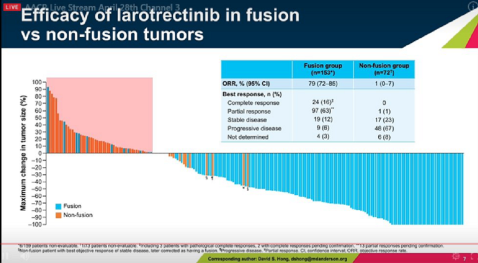 [2]Larotrectinib in TRK fusion cancer patients: Outcomes by prior therapy and performance status. Abstract CT199. 2020 AACR Annual Meeting
