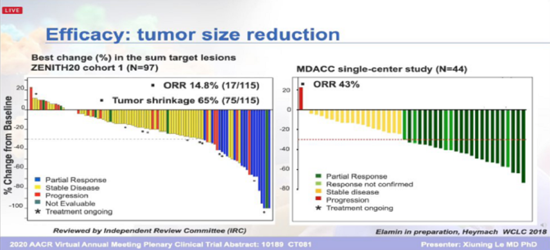 其中,65%患者都出现肿瘤缩小。既往在2018年的单中心研究结果显示,波齐替尼的ORR为43%。