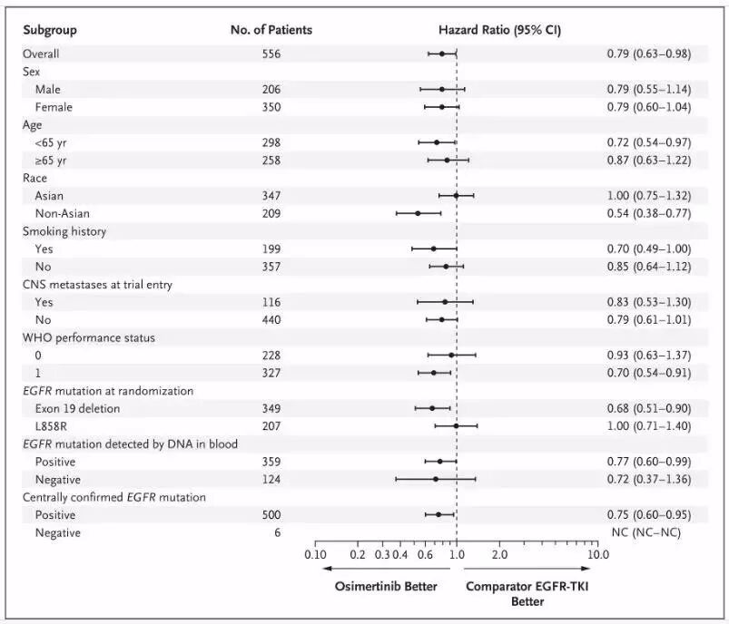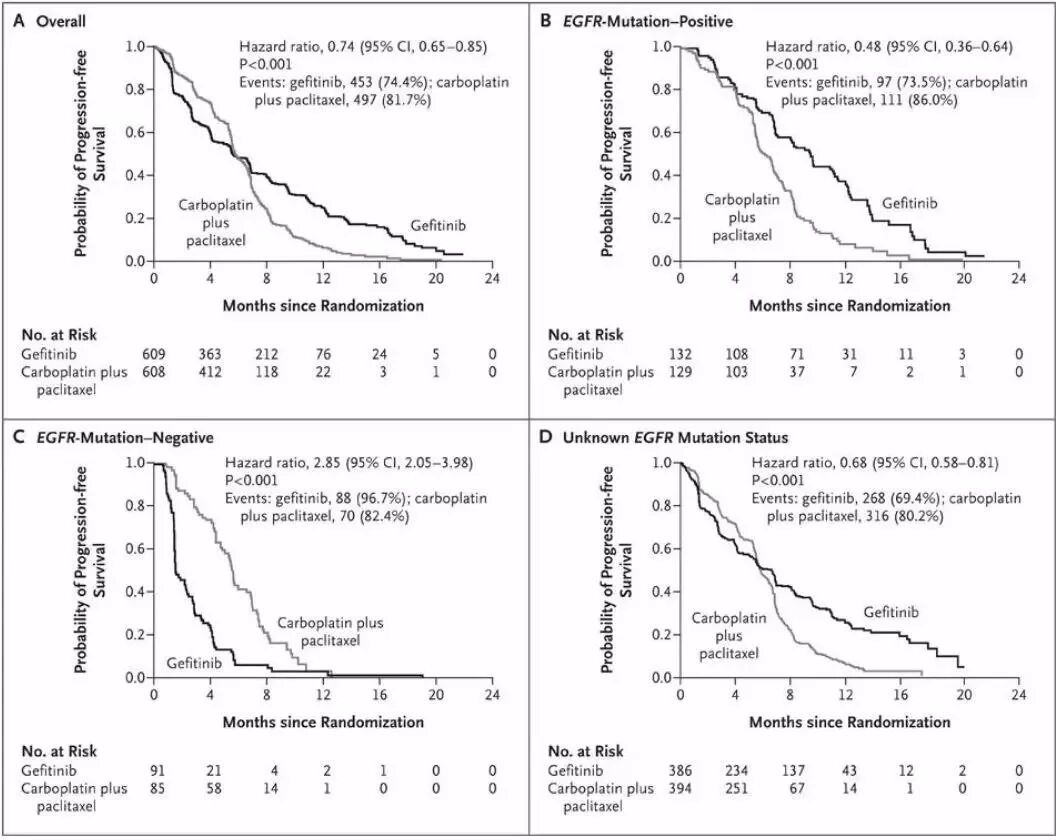 “弹指瞬间、沧桑巨变”。峥嵘70载,祖国迈过了坎坷与荆棘,创造了奇迹与辉煌,迎来了如今的盛世年华!“历经风雨,终见彩虹”。作为祖国医疗事业发展的“缩影和见证”,我国肺癌治疗已从相对落后的医疗水平,跻身于国际先进水平。70年来,肺癌临床诊疗模式“从经验医学、循证医学到精准医学”,在不断进步;影像学诊断技术“从X线检查诊断、CT到PET-CT”,在不断提升;临床治疗手段“从单纯手术、化疗、放疗到靶向治疗、免疫治疗”,为患者提供了越来越多的治疗选择和机会。1化疗时代奠定肺癌治疗基石建国初期,我国处于缺医少药的困境,肿瘤内科治疗也尚属空白,这致使我国肺癌化疗的发展起步较晚、肺癌化疗水平落后于国际水平。因此,建国后数十年,我国肺癌化疗的发展一直在追赶国际步伐,在吸取国际成果和自身不断探索中前行。那么,在20世纪后半叶,肺癌化疗取得了哪些国际性里程碑式成果呢?1949年,美国食品药品监督管理局(FDA)批准氮芥(mechlorethamine)用于癌症治疗,正式拉开了化疗时代的序幕[1]。氮芥是一种通过化学修饰DNA杀死细胞的烷化剂,Gilman早在1943年就使用氮芥治疗淋巴瘤。20世纪50年代,研究人员合成了环磷酰胺和氟尿嘧啶;70年代,蒽环类和铂类药物进入临床实践[2];90年代,紫杉烷类和喜树碱类药物应用于临床。这些药物的问世和应用,为肺癌患者提供了更多治疗选择。20世纪90年代,在《British Medical Journal 》发表的一项荟萃分析显示,与单纯最佳支持治疗相比,一线化疗可为晚期非小细胞肺癌(NSCLC)患者带来生存获益,这为一线化疗作为标准治疗广泛用于晚期NSCLC奠定了基础[3-4]。之后,在《New England Journal of Medicine》发表的一项随机临床试验显示,含铂双药方案治疗的缓解率接近20%,中位生存期达8个月,1年生存率为33%,2年生存率超过10%[5],确立了含铂双药方案在晚期NSCLC中的治疗地位。可见,自20世纪中叶,肺癌治疗开启了化疗时代,取得了诸多国际性肺癌化疗进展。诚然,我国肺癌化疗发展起步较晚,建国初期肺癌化疗水平相对比较落后,但是近20年取得了飞速发展,目前我国化疗水平可与国际水平比肩。2靶向、免疫治疗开启肺癌精准治疗时代走进21世纪,肺癌治疗踏上了新的征程,迈入了靶向、免疫治疗新时代,并吹响了精准治疗的号角。2002年,第一代表皮生长因子受体(EGFR)酪氨酸酶抑制剂(TKI)、全球首个肺癌原研靶向药吉非替尼率先在日本获批。2004年,进口原研吉非替尼在我国获批用于晚期NSCLC二线或以上治疗,为我国肺癌靶向治疗带来了第一缕阳光,开启了我国晚期NSCLC靶向治疗时代。2010年,基于IPASS研究[6]结果,吉非替尼在我国获批用于晚期NSCLC一线治疗。IPASS研究:该项Ⅲ期、开放标签研究由我国香港中文大学Tony Mok教授牵头开展,研究结果于2008年在欧洲肿瘤内科学会(ESMO)年会公布,2009年正式在《New England Journal of Medicine》发表,同时这也是中国肺癌学者首次荣登该世界权威医学期刊。该研究纳入先前未经治疗、不吸烟或轻度吸烟、晚期肺腺癌患者,给予吉非替尼(609例)或卡铂-紫杉醇(608例)治疗。结果显示,在总体人群中,进口原研吉非替尼组的12个月无进展生存(PFS)率为24.9%,而卡铂-紫杉醇组仅为6.7%,研究达到了主要终点——显示了吉非替尼的非劣效性,并表明吉非替尼相比卡铂-紫杉醇治疗具有PFS优势(HR 0.74,P<0.001)。此外,吉非替尼组的客观缓解率(ORR)显著高于卡铂-紫杉醇组(43.0% vs. 32.2%,P<0.001)。在EGFR突变阳性患者亚组(261例),接受进口吉非替尼患者的PFS较接受卡铂-紫杉醇患者明显延长,进展或死亡风险降低52%(HR 0.48,P<0.001),ORR更高(71.2% vs 47.3%,P<0.001)。然而,在EGFR野生型患者亚组(176例),接受卡铂-紫杉醇治疗患者的PFS较接受进口吉非替尼患者明显更长(图1)、ORR更高(23.5% vs 1.1%,P=0.001)。结果表明,进口原研吉非替尼的疗效显著优于化疗,EGFR基因突变患者从吉非替尼一线治疗获益最大。图1 IPASS研究的患者无进展生存情况2017年,三代肺癌靶向药奥希替尼二线疗法的获批使具有T790M突变的晚期NSCLC耐药患者靶向治疗方案得到进一步延续。2019年,基于FLAURA研究结果,奥希替尼在我国获批用于EGFR突变阳性晚期NSCLC一线治疗。FLAURA研究:该项Ⅲ期、国际多中心研究纳入556例初治、EGFR突变(外显子19缺失或L858R)的晚期NSCLC患者,给予奥希替尼(279例)或标准EGFR-TKI治疗(吉非替尼或厄洛替尼,277例)。结果显示,奥希替尼组的中位总生存(OS)长达38.6个月,接近39个月,较标准治疗组(31.8个月)延长6.8个月,死亡风险降低20%(HR 0.80,P=0.046,图2)。奥希替尼组的中位PFS较标准治疗组显著改善(18.9个月 vs 10.2个月,HR 0.46,P<0.0001)。在大多数预设亚组,均可见奥希替尼的OS获益(图3)。此外,在治疗3年时,奥希替尼组仍继续接受试验方案治疗的患者比例是标准治疗组的3倍(28% vs 9%)。同时,奥希替尼减少了52%的脑转移进展风险,增加了脑转移患者无脑部进展生存时间,对于提升患者生存质量意义重大,显示出显著的统计学和临床意义上的改善 [HR 0.48,95% CI 0.26-0.86,p=0.014]。相关结果已发表于《New England Journal of Medicine》[7]。图2 FLAURA研究的患者总生存情况图3 FLAURA研究的总生存亚组分析2018年,首个肺癌PD-1单抗药物在我国上市,为我国肺癌患者带来了免疫治疗这种新的治疗模式。过去一年中,我国共有5款PD-1单抗肺癌免疫药获批上市,包括2款进口药、3款国产药,为没有突变基因的患者带来了曙光。目