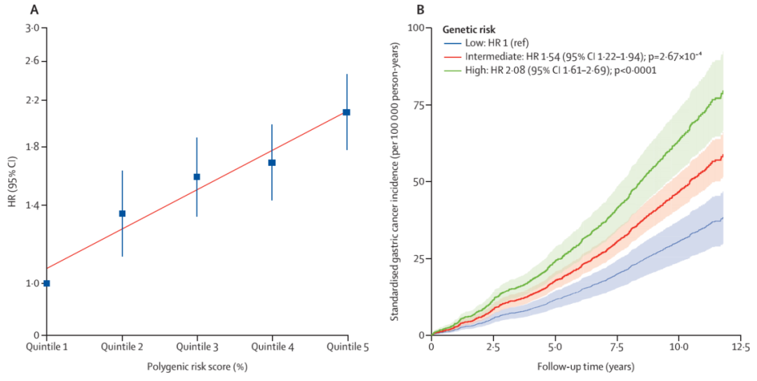 图4:胃癌发病风险随着遗传风险而升高